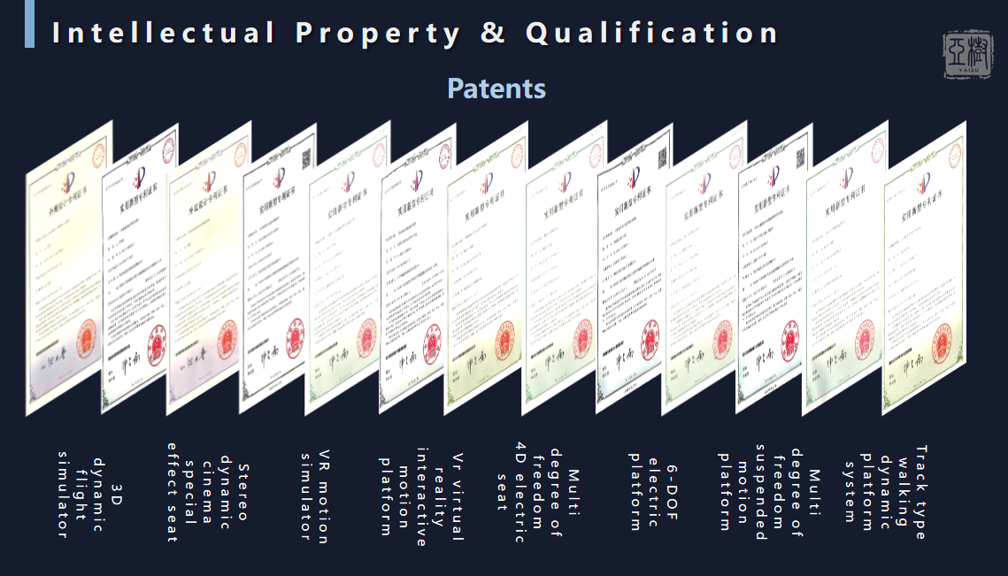 Yaisu Tech (Beijing) Co., Ltd., headquartered in the High End Equipment Manufacturing Industrial Park of Beichen National High tech Development Zone in Tianjin, specializes in the production and manufacturing of large hanging and back push flying cinema equipment, dark riding equipment, track riding equipment, dome cinema equipment, 4D seats, VR seats, 5D cinema equipment, customized swing tables, dynamic driving simulators, and six degree of freedom dynamic platforms. The company independently develops control boards for dynamic platforms, motion control software for dynamic platforms, multi degree of freedom platform control systems, simulation parameter calibration software, ball curtain and ring curtain fusion system software, LTC synchronous controllers, magnetic leakage detectors, and wall climbing robots. We provide one-stop services for industry clients, including customization, planning, design, production, debugging, installation, and after-sales service.