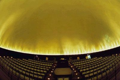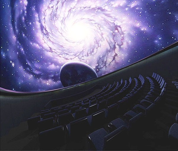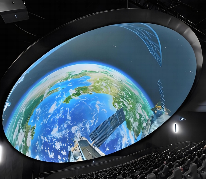 قاعة العرض في قبة المسرح هو هيكل قبة ، مع شاشة نصف كروية حول الجمهور ، مما يجعل الشاشة تبدو وكأنها السماء . لأن صورة الشاشة كبيرة وواضحة ، الشاشة يمكن أن تمتد من الجزء الأمامي إلى الجزء الخلفي من الجمهور ، يرافقه صوت ستيريو تطويق ، بحيث يشعر الجمهور في الوسط ، مع تأثير قوي جدا في الموقع . القبة يظهر للمشاهدين ما يمكن أن تخلق المناظر الطبيعية الضخمة ، والسماح لهم منغمسين تماما في صور مذهلة ضخمة . فيلم الستائر كروية فريدة من نوعها مع التأثير البصري و الصوت المحيطي ، وإعطاء الجمهور شعور قوي من الغمر و الخبرة ، بحيث يشعرون أنفسهم في الكون . الجمهور ليس فقط رواد الفضاء ، فإنها يمكن أن تبحر في الكون لا نهاية لها ، فهم أسرار الكون و التاريخ . في بعض الأحيان أنها خلية التي يمكن أن تخترق العالم المجهري للحيوانات والنباتات؛ في بعض الأحيان يشعر وكأنه أخذ آلة الزمن مرة أخرى إلى الماضي البعيد ، السفر مع الديناصورات ، أو السفر في المستقبل البعيد ، تجربة الحياة التكنولوجية في المستقبل .